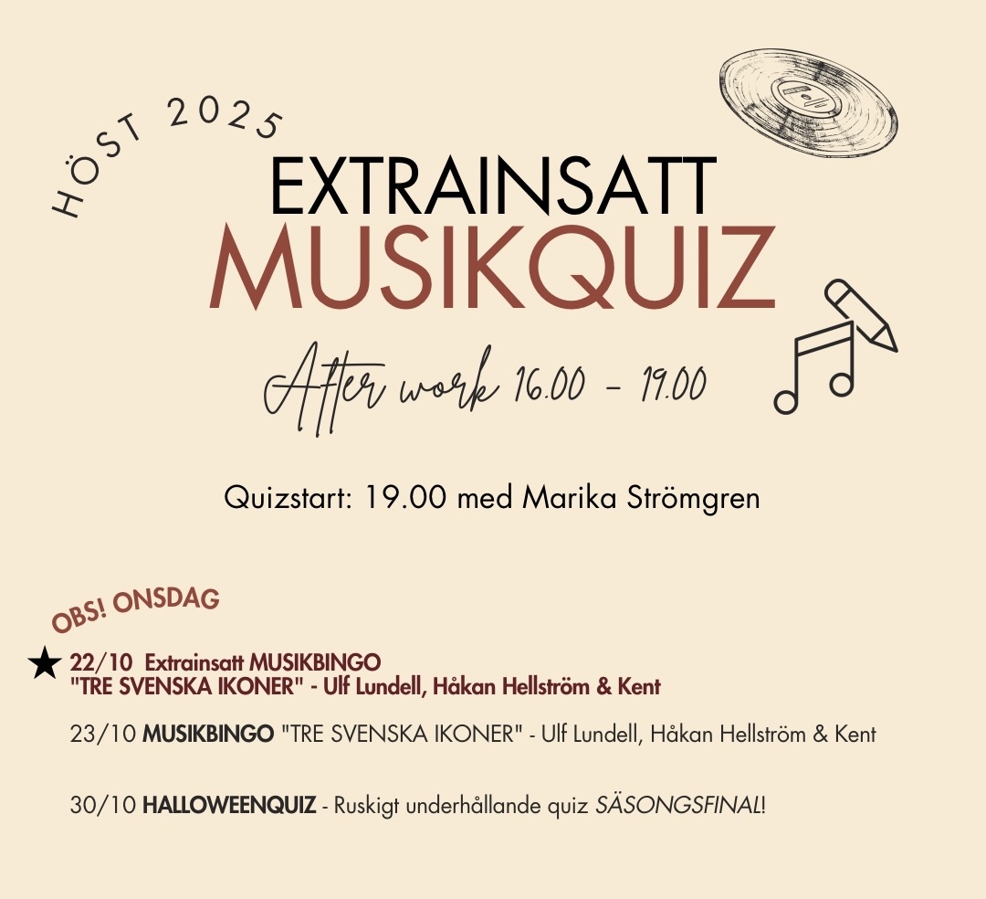 Quizet börjar kl 19.00. Kom gärna i god tid före så hinner ni äta i lugn och ro innan quizet börjar.